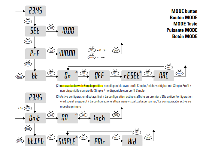 The Sylvac tools can operate in different operation modes, where the function of the DATA