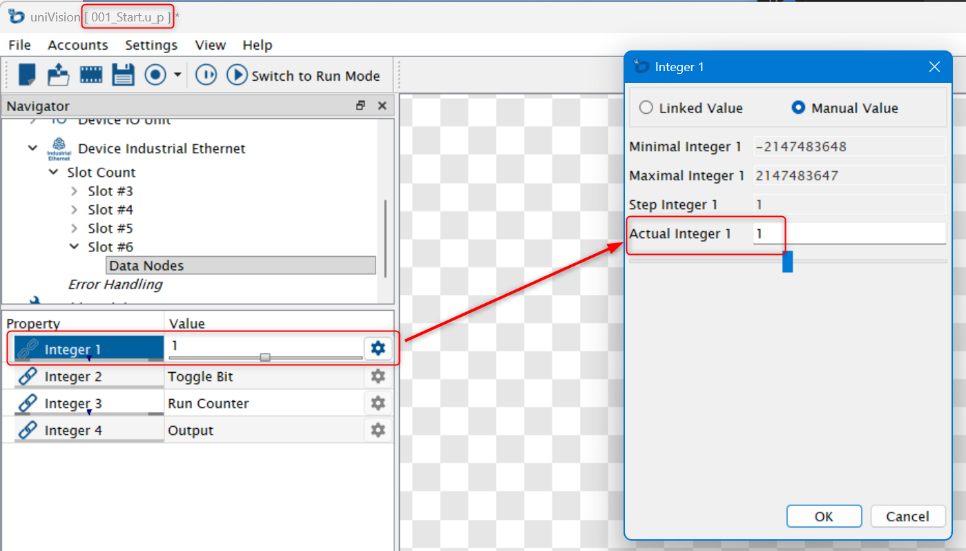 The value of Integer 1 must be manually set to the programs number (the first three digits of the program name) - as the camera does not have a built-in variable to report the currently active program and there is no handshake which reports the camera is ready again after changing a program (other than doing it manually using the Integer 1) - see the Wenglor weQube fieldbus manual for details.
