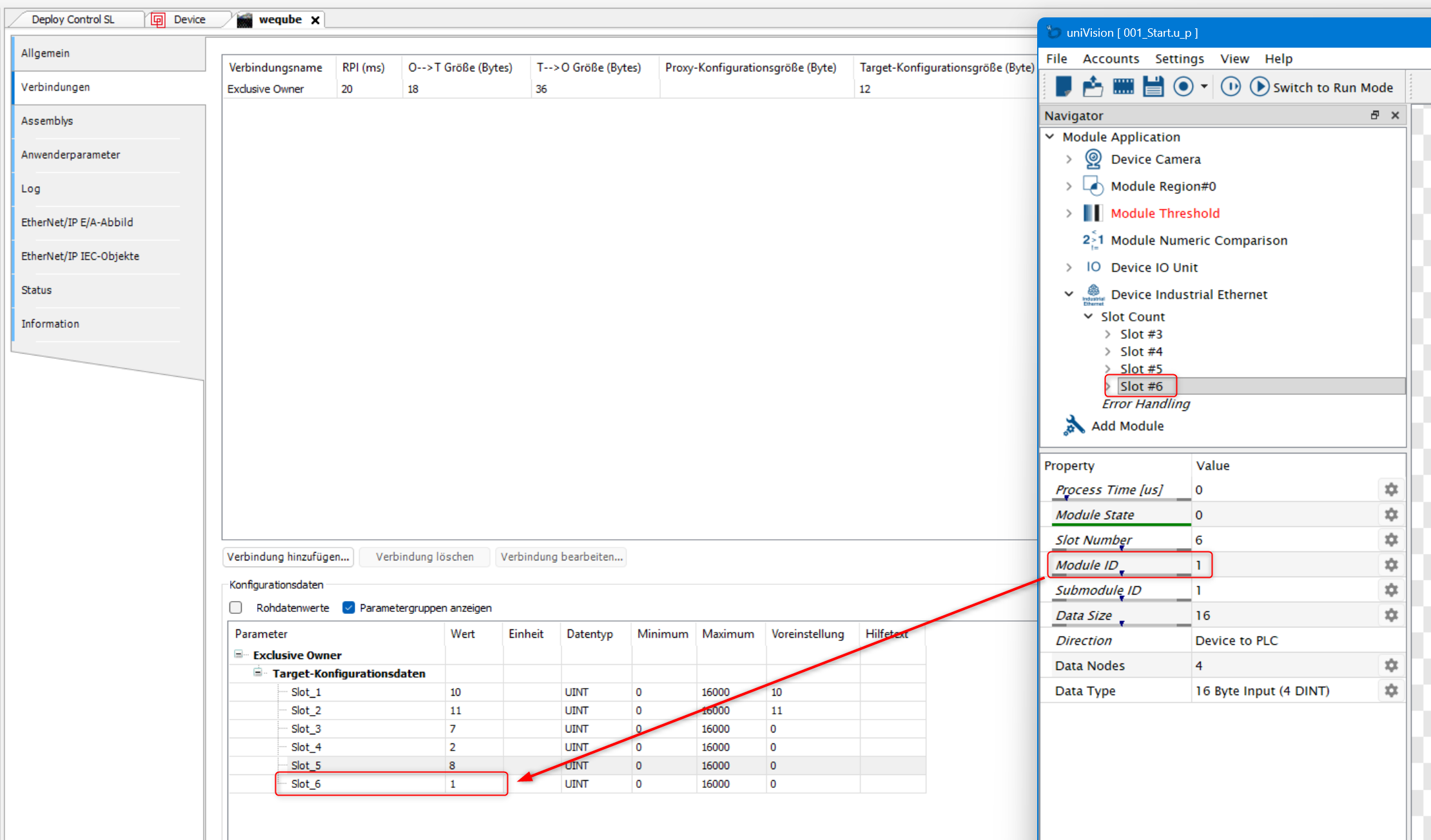 As there are some issues with data consistency (see the Wenglor weQube EtherNet/IP manual), slots 5 and 6 must be configured as follows (only slots 3 and slots 4 are usable for custom data):
