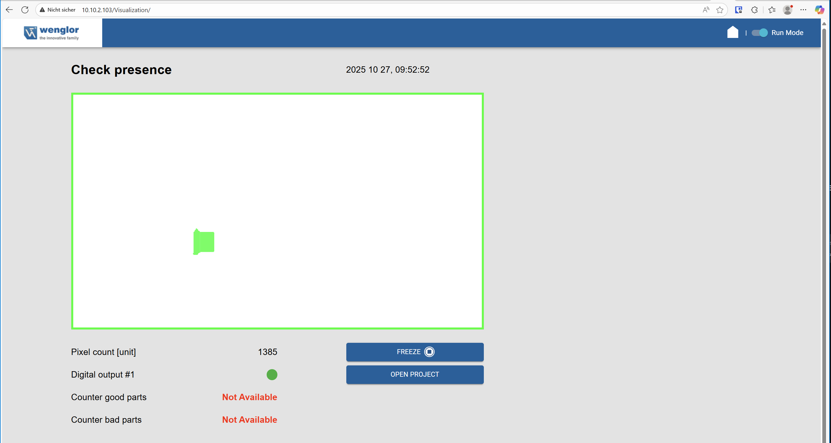 The camera provides an integrated webserver which allows access to the current camera image as well as a (configurable) visualization page with the last analysis result and even configuration.