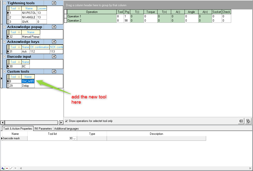 - Add an operation and assign the Stahlwille WiFi tool to it.