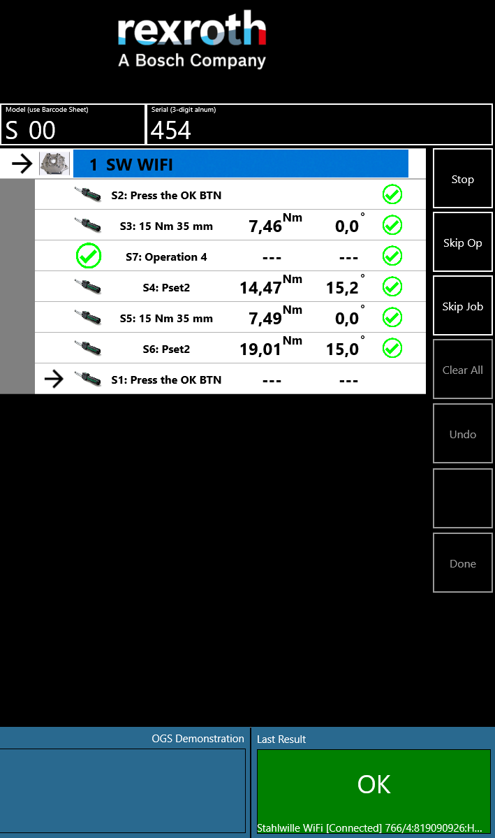 OGS has an interface to add additional tool drivers by adding Windows-DLLs to the [TOOL_DLL] section in station.ini. To simplify the creation of custom tool drivers, OGS offers the heLuaTool.dll, which enables the development of tool drivers using pure LUA. With this functionality, the Stahlwille WiFi torque wrench is seamlessly integrated into OGS. See Lua custom tools for more info.