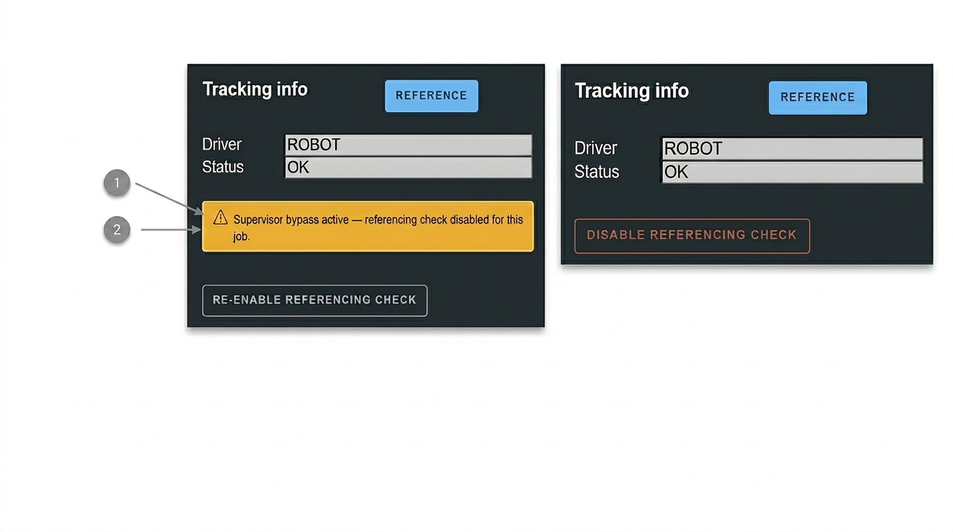 - ❷ Bypass toggle: Supervisors (level ≥ 2) can enable/disable the referencing bypass