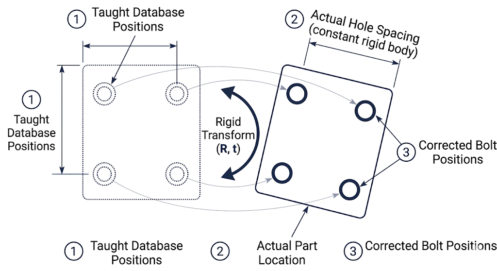 - Reference bolt positions must be taught (recorded coordinates exist in the database)