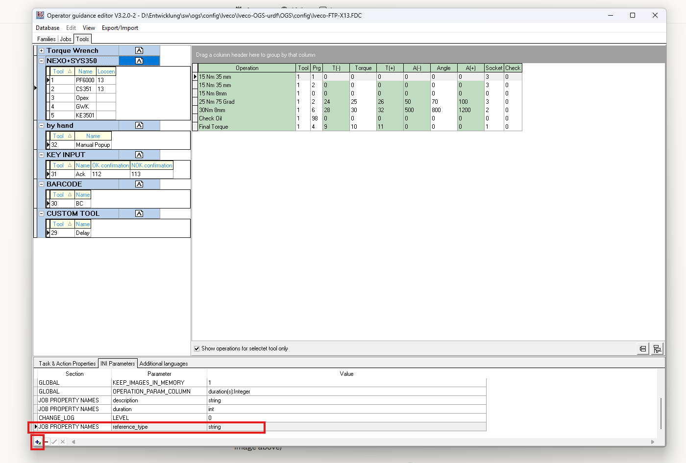 - In the INI Parameters tab, locate the JOB PROPERTY NAMES section