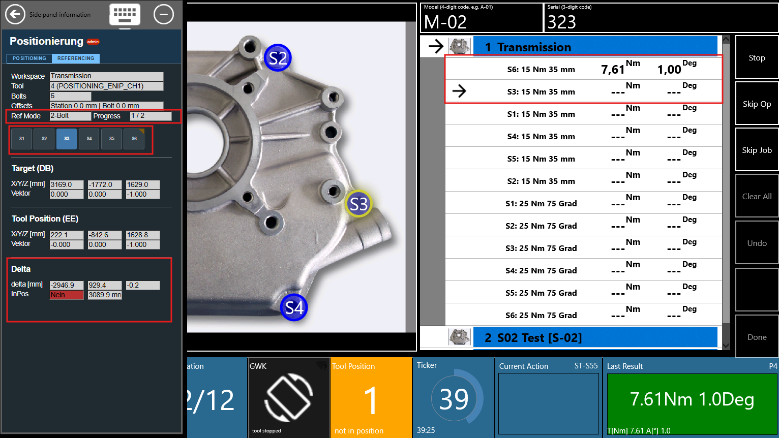 - OGS guides operator to reference bolt S2 → tool is enabled (inter-bolt distance check)