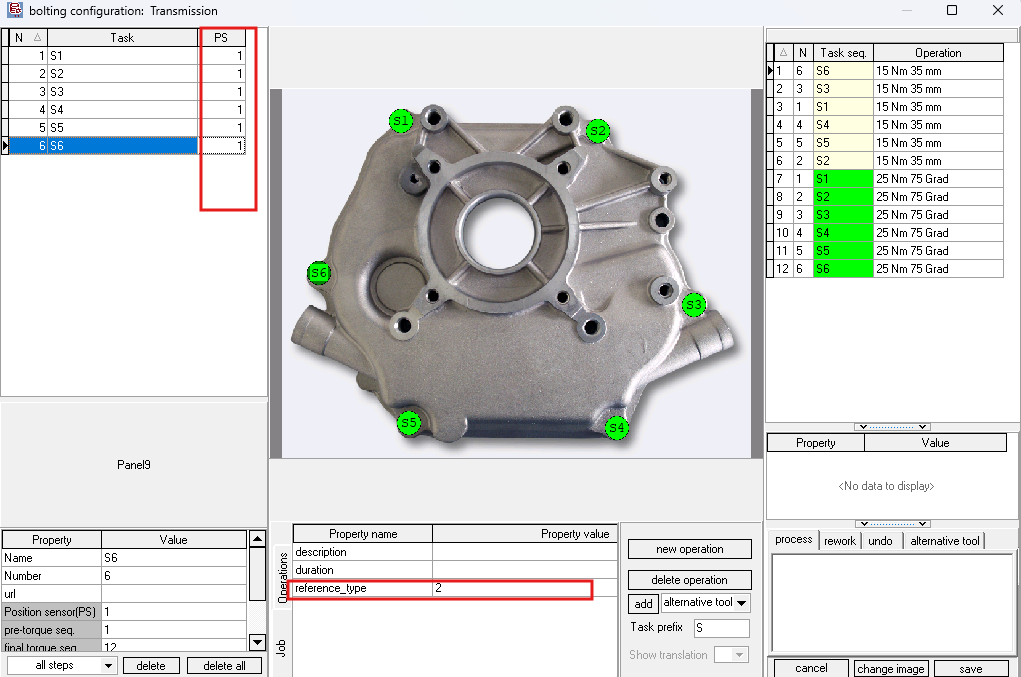 - Reference bolt tasks must have positioning enabled (PS value > 0 in the workflow editor). Only tasks with a non-zero PS value participate in position tracking — tasks with PS=0 are invisible to the referencing system. See workflow configuration for how to set the PS column.